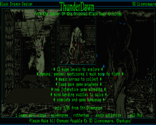 The author of ThunderDawn makes it very clear in his text document that this is not an attempt at a Doom clone. Instead it's more of a Dungeon Master game. The aim of the game is to collect some blood crytals and kill lots of really big ugly monsters. Basically, you go into `portals', run around killing enemies and then attempt to get out (without dying) by collecting a key and a crystal.
