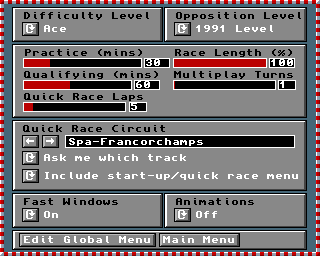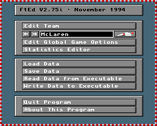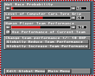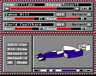 This screen allows you to alter team/driver settings and colours: